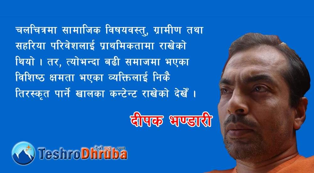 मानिसको जीवनमा आइपरेका सम्वेदनशील अवस्थालाई काल्पनिक कथा वस्तु बनाएर प्रदर्शन गर्दासमेत चलचित्र बोर्डलगायतका निकायहरू मौन बस्नु भनेको अपाङ्गता भएका नागरिकको हकहितविरूद्ध उभिनुजस्तै हो ।