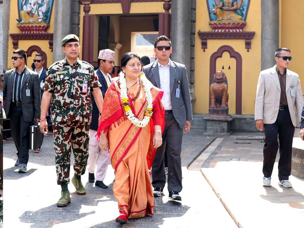 महाशिवरात्रि पर्वका अवसरमा राष्ट्रपति विद्यादेवी भण्डारीले पशुपतिनाथ मन्दिरमा पूजा आराधना एवं दर्शन गरेकी छिन् । राष्ट्रपति भण्डारीले मूल मन्दिर प्रवेश गरी विधिपूर्वक पूजा आराधना एवं दर्शन गरेकी हुन् । उनले विधिअनुसार सबै मठ मन्दिरको दर्शन गरी मूल मन्दिरमा विधिपूर्वक पूजा आराधना गरेकी थिइन् । राष्ट्रपति भण्डारी पशुपतिनाथ मन्दिर पुग्नु हुँदा उनलाई संस्कृति, पर्यटन तथा नागरिक उड्ययनमन्त्री प्रेमबहादुर आले, मन्त्रालयका सचिव महेश्वर न्यौपाने, पशुपति क्षेत्र विकास कोषका सदस्य सचिव डा.मिलनकुमार थापा, कोषाध्यक्ष नारायणप्रसाद सुवेदी, कोष सञ्चालक परिषद्का सदस्य, कार्यकारी निर्देशक, कर्मचारीलगायतले स्वागत गरेका थिए ।