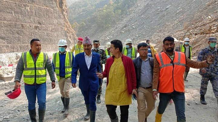 मन्त्री चौधरीसँगै हेलम्बु गाउँपालिकाका अध्यक्ष निमा ग्याल्जेन शेर्पा, मेलम्ची खानेपानी विकास समितिका कार्यकारी निर्देशक वासुदेव पौडेललगायत सहभागी थिए । निरीक्षणका क्रममा मन्त्री चौधरीले केही दिनअघि ठेकेदारले केही समय काम रोकेको भन्दै उनले भुक्तानी समयमै गर्न सरकार तयार रहेको तर कुनै पनि बहानामा काम ढिलो हुन नहुने बताए । मन्त्री चौधरीले डलरमा रकम भुक्तानी गर्न केही समय लागेको तर नेपाली रुपैयाँ सरकारले ठेकेदारलाई सम्झौताअनुसार भुक्तानी गरिरहेको पनि त्यस अवसरमा स्पष्ट गरे। स्थानीय प्रभावित, बाढी प्रभावितको मागमा मन्त्रालय, खानेपानी विकास समिति र सरोकारवाला सरकारी निकाय सकारात्मक रहेको उनले बताए। मन्त्री चौधरीले भने, ‘सबैका उचित माग पूरा हुन्छन्, यसतर्फ सरकार सजग छ तर काम बन्द गर्ने काम कसैले पनि गर्नु हुँदैन, कुनै पनि हालतमा सरकारले तोकेको समय यही महिनाभित्रै काठमाण्डौ पानी पुर्याउनुपर्छ ।’ उनले ठेकेदार कम्पनीले काम सुरु गरेको ९० दिनभित्र काम सक्ने सम्झौता गरेकाले त्यहीअनुसार काम हुनुपर्नेमा जोड दिए। उनले अहिले भइरहेको कामको गति चित्तबुझ्दो रहेको पनि बताए । मेलम्ची खानेपानी विकास समितिका सिनियर डिभिजनल इन्जिनियर पदमबहादुर कुँवरले अम्बाथान पोर्टल अडिटमा सोचेभन्दा बढी गेग्रान थुप्रिएकाले व्यवस्थापनमा केही समय बढी लागेको बताए।