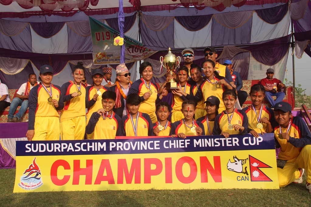 कैलालीको धनगढीमा सम्पन्न मुख्यमन्त्री कप यु–१९ महिला राष्ट्रिय क्रिकेट प्रतियोगिताको उपाधि गण्डकी प्रदेशले जितेको छ। कर्णाली प्रदेशलाई ३ विकेटले पराजित गर्दै गण्डकीले प्रतियोगिताको उपाधि हातपारेको हो। उपाधि विजेता गण्डकीले दुई लाख नगदसहित ट्रफि, मेडल र प्रमाणपत्र प्राप्त गरेको छ। उप–विजेता बनेको कर्णाली प्रदेशले एक लाख पचास हजार नगदसहित ट्रफि, मेडल र प्रमाणपत्र प्राप्त गरेको छ। कैलालीको धनगढी स्थित फाप्ला अन्तर्राष्ट्रिय क्रिकेट मैदानमा शुक्रबार सम्पन्न फाइनल खेलमा टस जितेर ब्याटिङ गर्ने निर्णय गरेको कर्णाली प्रदेशले निर्धारित २० ओभरमा ७ विकेट गुमाएर ६४ रनेको लक्ष्य प्रस्तुत गरेको थियो।