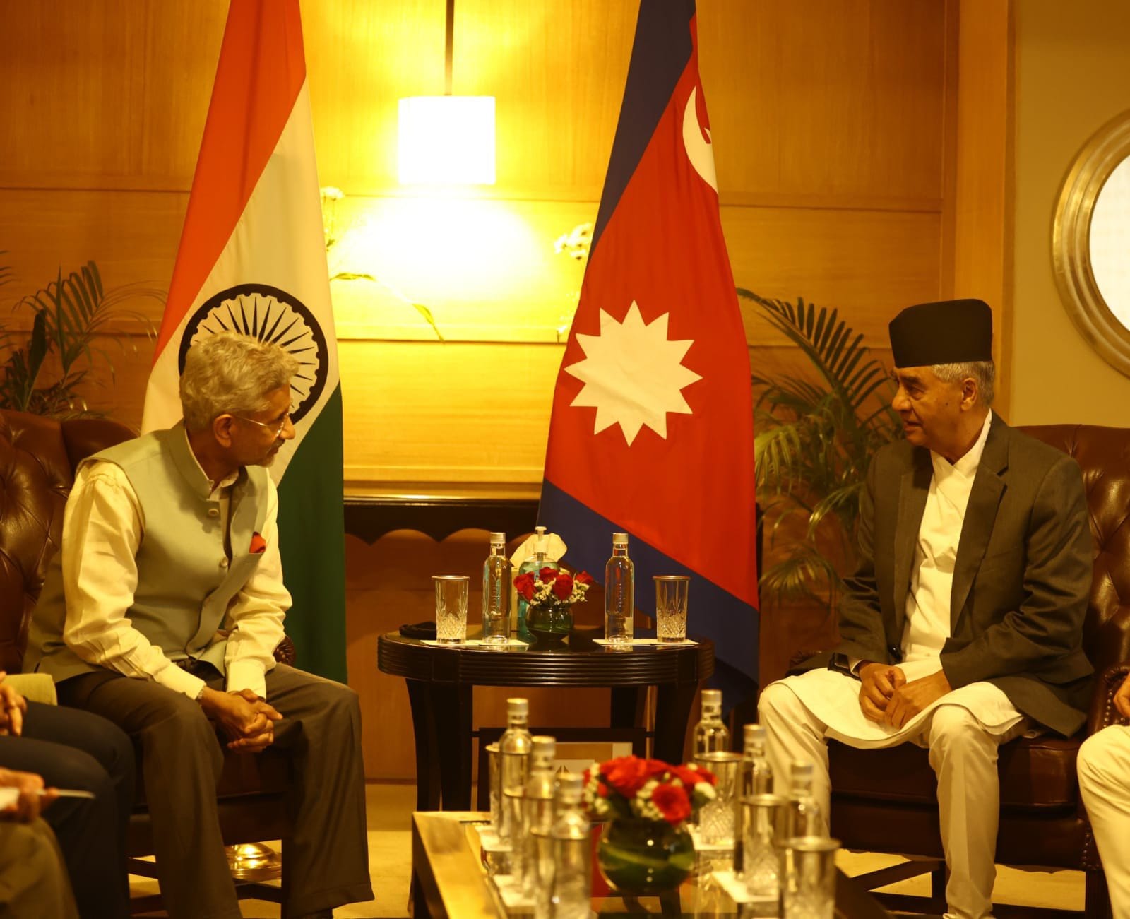 प्रधानमन्त्री शेरबहादुर देउवा र भारतीय विदेशमन्त्री एस जयशङ्करबीच भेटवार्ता भएको छ । उनीहरूबीच केहीबेरअघि नयाँ दिल्लीको चाणक्यपुरीमा रहेको आईटीसीमा भेटवार्ता भएको भारतीय सञ्चारमाध्यमले जनाएको छन् । प्रधानमन्त्री देउवाले भारतीय विदेश मन्त्रालयका सचिव हर्षवर्धन शृङ्गलासँग पनि भेटवार्ता गरेका छन् ।दविदेशमन्त्री जयशङ्करसँगको भेटपछि प्रधानमन्त्री देउवा भारतीय जनता पार्टी (बीजेपी) को केन्द्रीय कार्यालय पनि पुगेका हुन । त्यहाँ प्रधानमन्त्री देउवाले बीजेपी अध्यक्ष जेपी नड्डासँग भेटवार्ता गरे छ ।