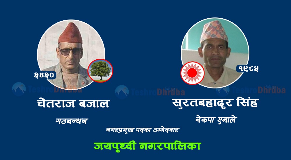 बझाङ । बझाङको जयपृथ्वी नगरपालिकामा सत्ता गठबन्धन तर्फका उम्मेदवार चेतराज बजालको अग्रता कायमै छ । पछिल्लो मतपरिणामअनुसार उनका प्रतिद्वन्द्वी नेकपा एमालेका सुरतबहादुर सिंहलाई ४३७ मतले पछि पार्दै अग्रता कायम गरेका हुन् ।