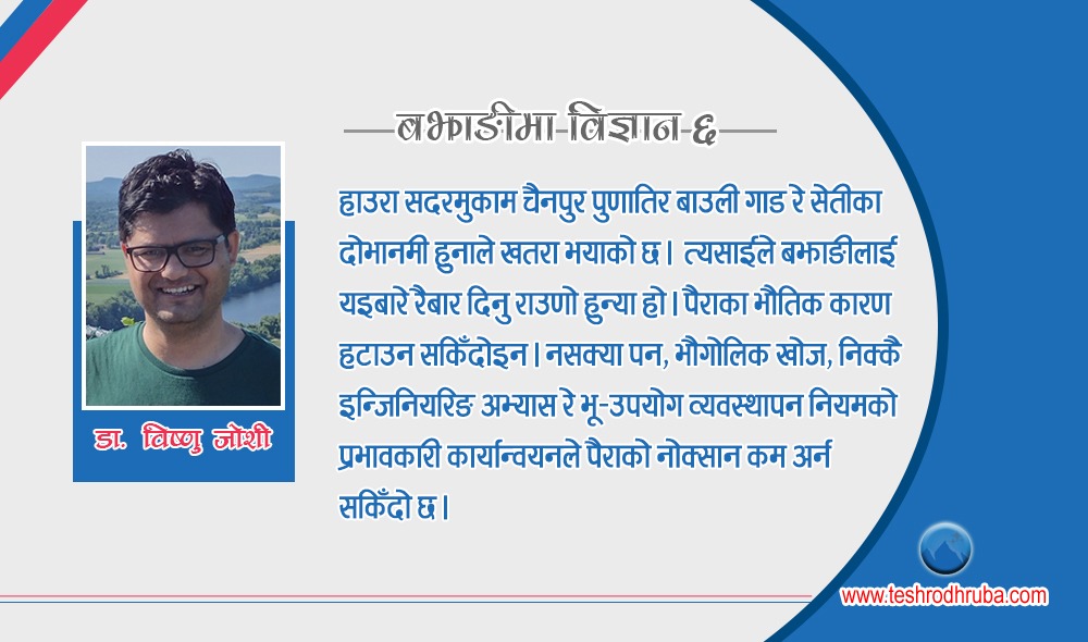 पोरका वर्ष थलाराको डिक्ला, छान्नाका सबुई ठाउँ पैरो गई मस्तै नोक्सान अर्यो । अब सम्झनामा मात्तै रह्याको छ खातीगाउँ । यै बर्खा पन फेरि छान्नाको दुःख बन्दै जडारीगाड । कालुखेती रे घाटखोलाका बीचको खणिमेलाको पैरो गयाको गयै छ । जाल्या बग्ण सेती बणीबन्ट रोणउणो पानी आउन लाग्याको छ । हाउरा सदरमुकाम चैनपुर पुणातिर बाउली गाड रे सेतीका दोभानमी हुनाले खतरा भयाको छ । त्यसाईले बझाङीलाई यइबारे रैबार दिनु राउणो हुन्या हो । पैराका भौतिक कारणहरू हटाउन सकिँदोइन । तर, भौगोलिक खोज, निक्कै इन्जिनियरिङ अभ्यासहरू रे भू–उपयोग व्यवस्थापन नियमहरूको प्रभावकारी कार्यान्वयनले पैराको नोक्सान कम अर्न सकिँदो छ ।