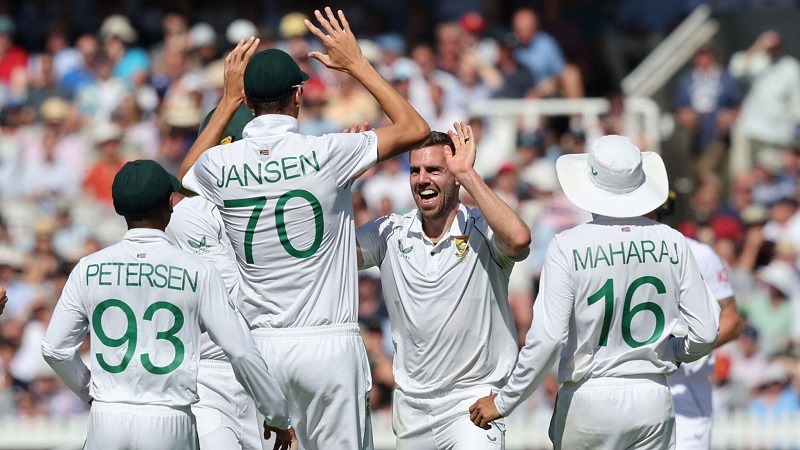 दक्षिण अफ्रिकाले पहिलो टेस्टमा घरेलु टोली इङ्ग्ल्यान्डलाई हराएको छ । लर्ड्समा भएको खेलमा पाहुना टोली दक्षिण अफ्रिकाले इङ्ग्ल्यान्डलाई एक इनिङ्स र १२ रनले हराएको हो । जितसँगै ३ खेलको टेस्ट शृङ्खलामा दक्षिण अफ्रिकाले १–० को अग्रता बनाएको छ। इङ्ग्ल्यान्डको दोस्रो पारीलाई १ सय ४९ रनमा समेट्दै दक्षिण अफ्रिकाले दुई दिनभन्दा बढीको खेल बाँकीको अवस्थामा जित हात पारेको हो । पहिलो पारीमा दक्षिण अफ्रिकाले १ सय ६१ रनको अग्रता बनाएको थियो ।