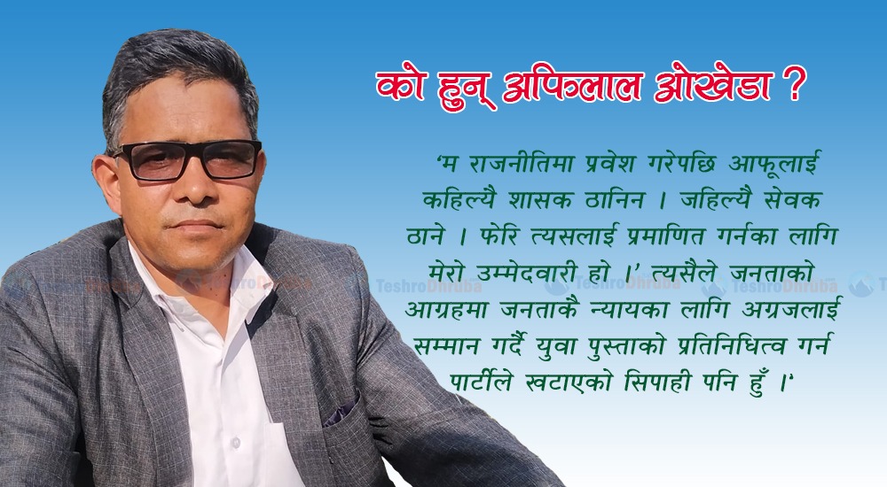 बझाङ । आउँदो मंसिर ४ गते हुने प्रदेश सभा सदस्य निर्वाचनका लागि बझाङ १ बाट नेकपा एमालेका नेता अफिलाल ओखेडा उम्मेदवार भएका छन् । लामो समय जिल्लामा राजनीति गर्दै आएका ओखेडा समानुपातिक सूचीबाट संविधानसभा सदस्य भएका हुन् ।