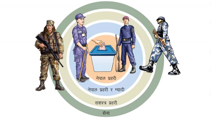 सुरक्षित र शान्तिपूर्ण रूपमा मतदान गराउन बिहानैदेखि देशभरको सुरक्षा व्यवस्था कडा पारिएको छ । देशका धेरै ठाउँमा बिहानैदेखि सुरक्षाकर्मी खटिएका छन् । चोक चोकमा खटिएका प्रहरीले सुरक्षा जाँचमा कडाइ गरिरहेका छन् । सुरक्षा व्यवस्थापन गरेकाले ढुक्क भएर मतदान केन्द्रसम्म पुग्न र कसैको दबाबमा नपरी भोट हाल्न गृह मन्त्रालयले आग्रह गरेको छ ।