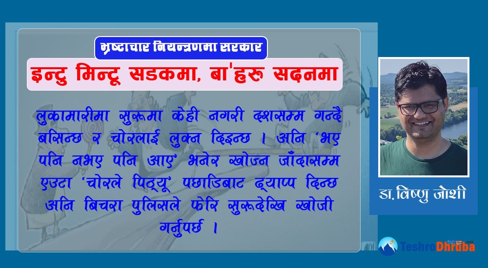 अब केही दलाल, बिचौलिया र तिनको संरक्षणमा लागेका भ्रष्ट नेताहरूलाई टिनिनिनिनिनिनी झ्याप्पै नगर्दासम्म यो भ्रष्टाचार विरुद्धको कर्मकाण्डी केटाडीका खेल चलिरहन्छ !