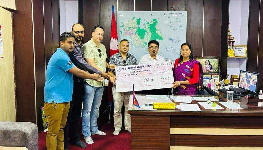 कैलाली । सुदूरपश्चिमेली नेपाली समाज अन्तर्राष्ट्रिय समितिले आज धनगढ़ीमा एक कार्यक्रममा उप महानगरपालिकामा पुगी सुदूरपश्चिमेली नेपाली समाज कार्यसमितिको तर्फबाट संचालित अभियानमा आर्थिक सहयोग गरिएको ने.रू. एक लाखको चेक हस्तान्तरण गरेको छ । धनगढी उपमहानगरपालिकाले संचालन गरिएको “हरियालिमय धनगढ़ी” उक्त अभियानलाई एक्यवद्धता जनाउँदै उप-महानगरपालिकामा उपमेयरको कार्यकक्षमै पुगी सो रकम हस्तान्तरण गरिएको हो ।
