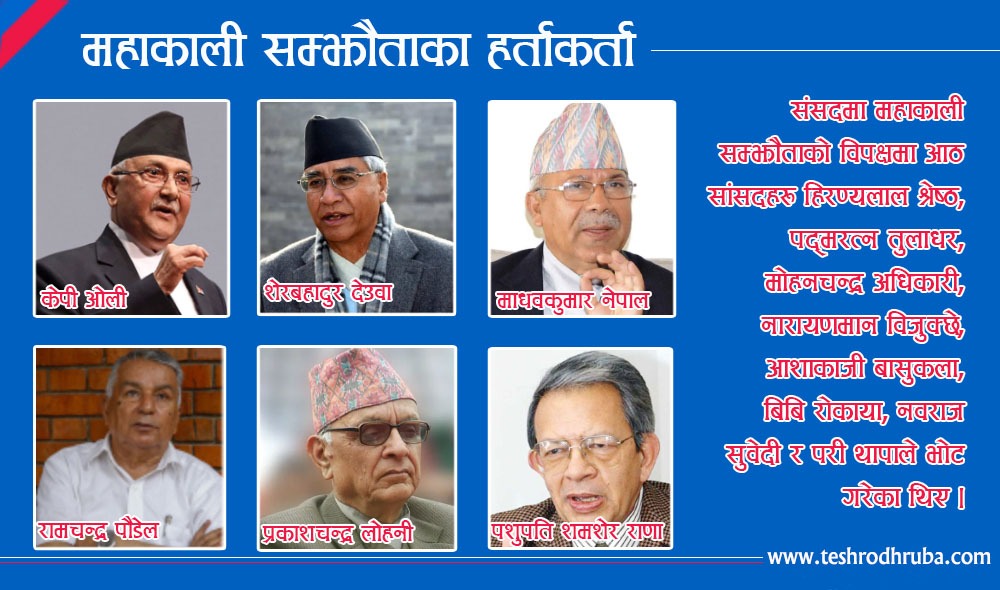 त्यसबेला देउवा प्रधानमन्त्री थिए । प्रमुख प्रतिपक्षी दलका नेता थिए माधवकुमार नेपाल । सम्झौताका लागि गठित कार्यदलका संयोजक थिए ओली । ओली नेतृत्वको समितिमा पनि फरक मत राख्ने नेता धेरै थिए । महाकाली सम्झौतामा संसदमा हस्ताक्षर गर्नुअघि तत्कालीन नेकपा एमालेले केन्द्रीय कमिटी बैठकमा आन्तरिक मतदान गराएको थियो । हस्ताक्षरमा १७/१७ मत परेको थियो ।