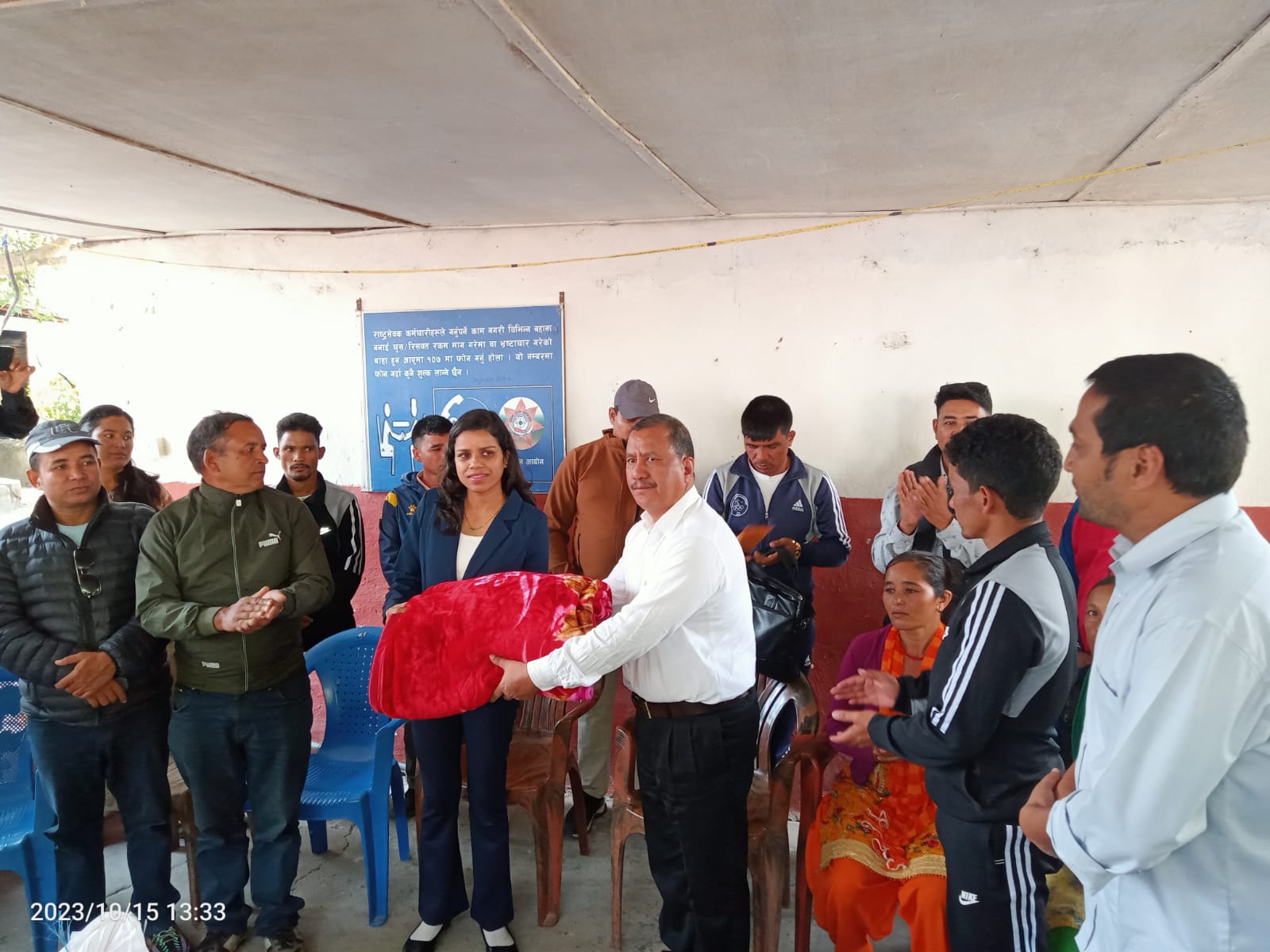 केन्द्रीय सदस्य मल्लले इजरायलमा विद्रोही पक्ष हमासको आक्रमणमा परी ज्यान गुमाएका जयपृथ्वी नगरपालिका–११ का गणेश नेपालीको परिवारलाई नगद रू. १० हजार सहयोग गरेको बताउनुभयो । “ज्यान गुमाएका गणेशको परिवार र सोही वडामा भूकम्पबाट ज्यान गुमाएकी गुनमतीदेवी धामीको परिवारलाई रू. १० हजार रूपैयाँ पार्टीको तर्फबाट नगद सहयोग गरेका छौँ ।” उहाँले भन्नुभयो ।