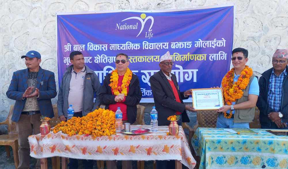 बझाङ । जयपृथ्वी नगरपालिका–४ गोलाईमा रहेको बालविकास माविको पुस्तकालय भवन निर्माणका लागि नेशनल लाइफ ईन्स्योरेन्सले आर्थिक सहयोग गरेको छ ।
