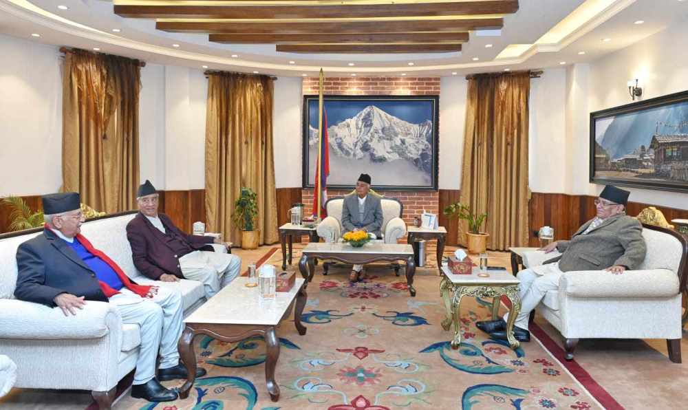 राष्ट्रपति पौडेलले प्रधानमन्त्री तथा नेकपा माओवादी केन्द्रका अध्यक्ष पुष्पकमल दाहाल प्रचण्ड, प्रमुख प्रतिपक्षी दल नेकपा एमालेका अध्यक्ष केपी शर्मा र नेपाली कांग्रेसका सभापति शेरबहादुर देउवालाई शुक्रबार शीतलनिवासमा बोलाएर मुलुकमा देखिएका महत्वपूर्ण विषयहरू संघीयता कार्यान्वयन, सुशासन र विश्वविद्यालयमा सुधार गर्न ध्यानाकर्षण गराएको राष्ट्रपतिका प्रेस सल्लाहकार किरण पोखरेलले जानकारी दिए ।