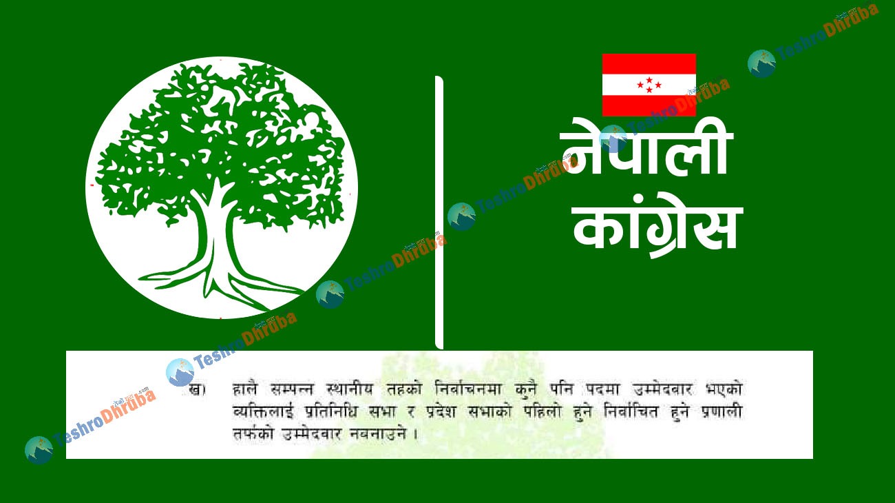नेपाली कांग्रेसले भने स्थानीय तहको निर्वाचनमा उम्मेदवार भएर चुनाव लडेको व्यक्तिलाई प्रदेश वा प्रतिनिधि सभा निर्वाचनमा टिकट नदिने जनाएको छ । मुख्यसचिव कृष्णप्रसाद पौडेलद्वारा २०७९ असोज १७ गते जारी विज्ञप्तिमा पहिलो पाँच वर्षका लागि स्थानीय तहमा निर्वाचन लडेको व्यक्तिलाई प्रदेश वा प्रतिनिधि सभामा उम्मेदवार नबनाइने कुरा सर्वसम्मतिले पारित गरेको थियो ।