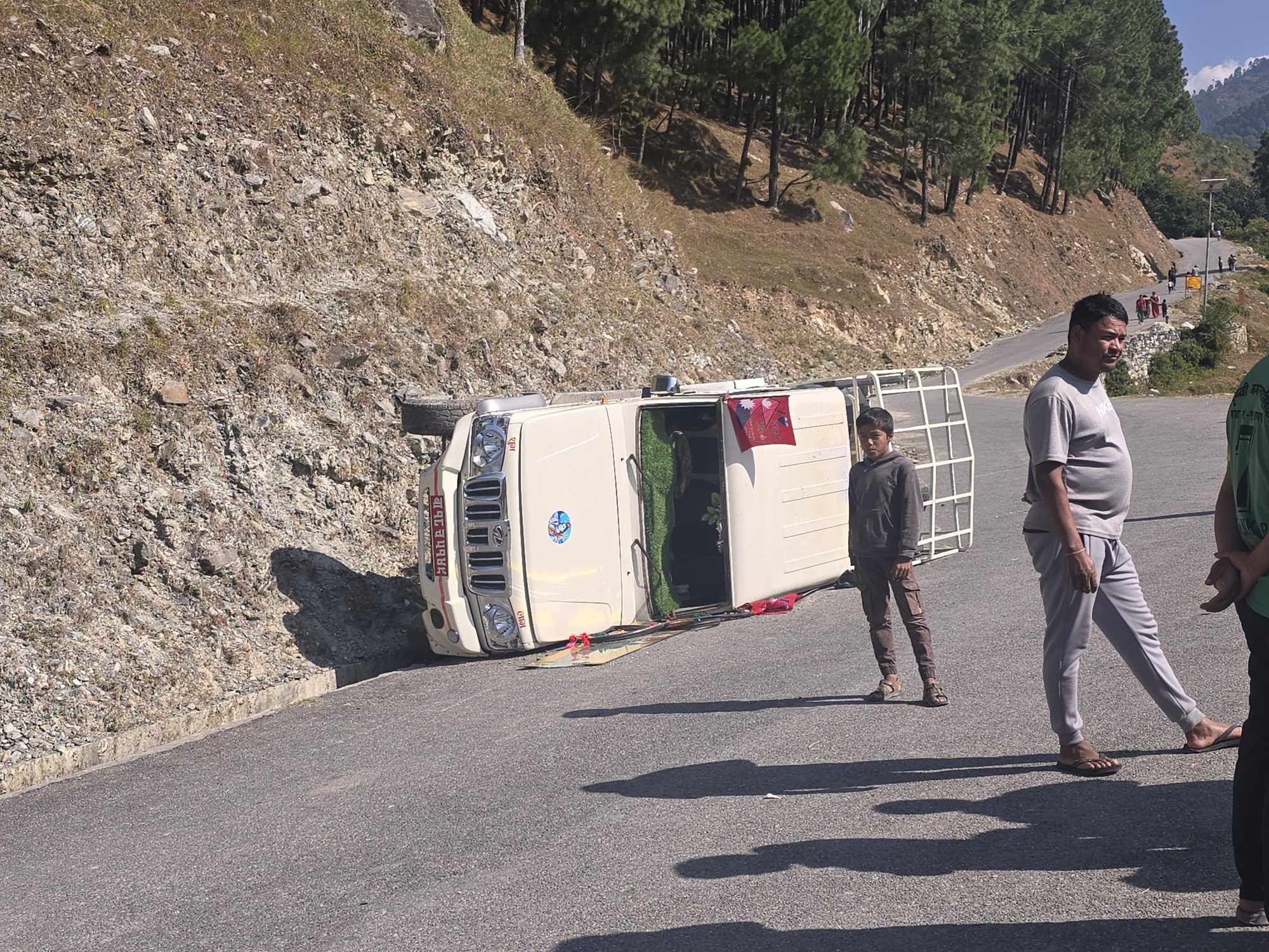 According to Lokendra Thagunna, the information officer and police inspector at the district police office, the jeep, carrying seven passengers, overturned on the road due to high speed. Those injured include the jeep driver, 56-year-old Bir Bahadur Bam from Talkot Rural Municipality-1, 45-year-old Dhanalakshmi Bam from the same area, 17-year-old Shankar Dhami from Jayaprithivi Municipality-11, and 25-year-old Bidhya Bohora from the same locality.