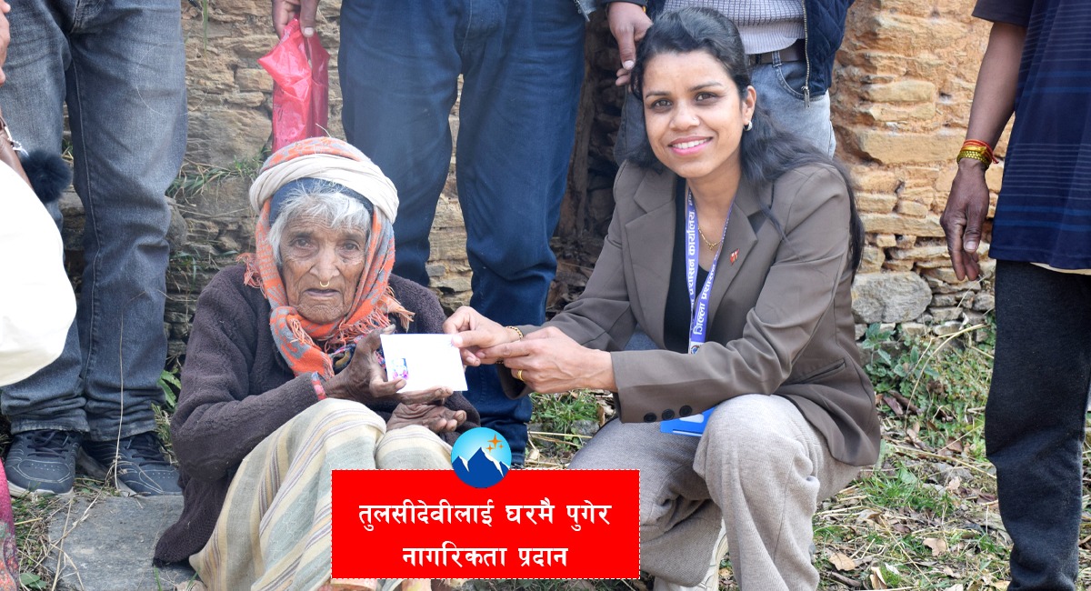 जन्मेको शताब्दी नजिकै पुग्दा पनि उनी नेपालको अनागरिक भइन् । सरकारी कागजातबारे अनभिज्ञ उनलाई शनिबार जिल्ला प्रशासन कार्यालय बझाङले घरमै गएर नागरिकता प्रदान ग-यो । सहायक प्रमुख जिल्ला अधिकारी सत्यकुमारी जोशीले शुक्रबार नै सबै कागजात तयार गरी शनिबार घरमै पुगेर नागरिकता दिए ।