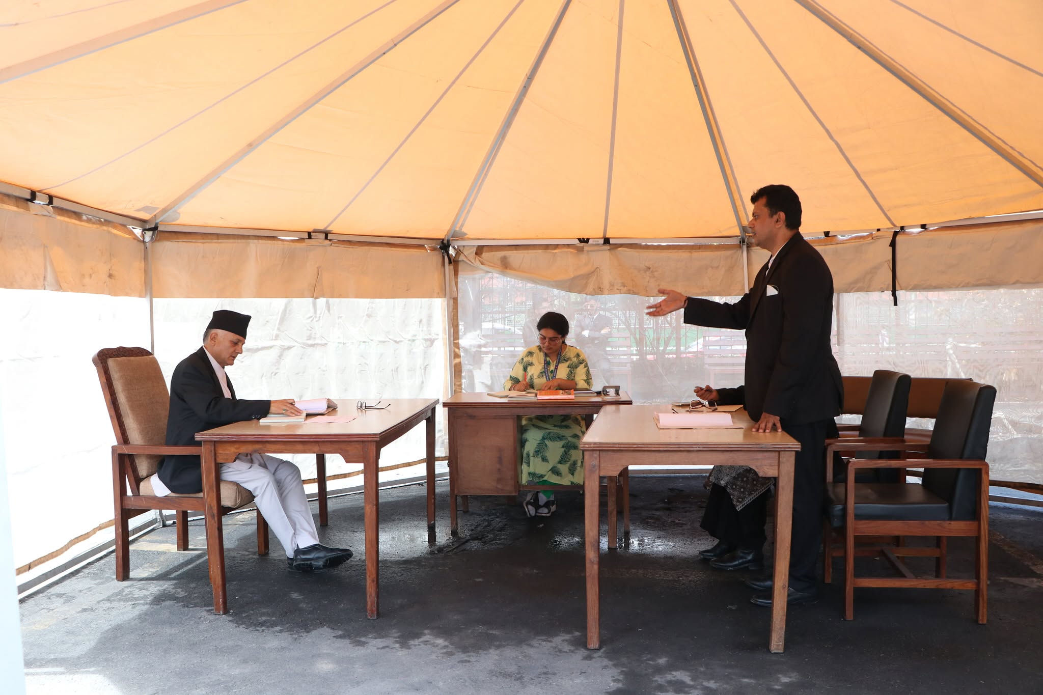 काठमाडौं । सर्वोच्च अदालतमा बिहीबार (असोज २) त्रिपालमुनि बसेको इजलास चलिरहेको छ ।