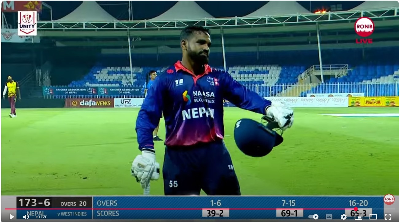 बझाङ । नेपालले युनिटी कपको दोस्रो खेलमा वेष्टइण्डिजलाई १ सय ७४ रनको चुनौतीपूर्ण लक्ष्य दिएको छ । शारजाह क्रिकेट रंगशालामा टस जितेर पहिला ब्याटिङ रोजेको नेपालले निर्धारित २० ओभरमा ६ विकेट गुमाउँदै १ सय ७३ रन बनायो । शारजाहमा १ सय ७० माथिको योगफल पूरा गर्न निकै चुनौतीपूर्ण मानिन्छ ।