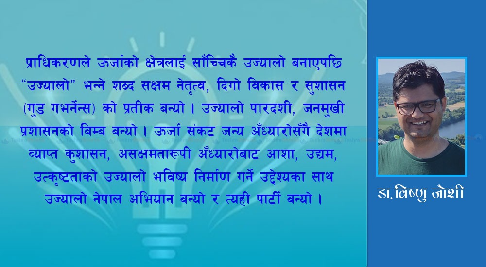 (अनुसन्धानमूलक संस्था निरीका सदस्य डा. जोशी हाल बोस्टनस्थित हार्वर्ड इनोभेसन ल्याब कम्पनीमा वैज्ञानिकको रुपमा कार्यरत छन् । डा. जोशीले उज्यालो नेपाल अभियानको लागि विभिन्न क्षेत्रका विशेषज्ञहरूसँग भेटघाट गरी/गराइ सुझाव दिँदै आएका छन्। यहाँ अभिव्यक्त विचार उनका निजी हुन्।-सम्पादक)