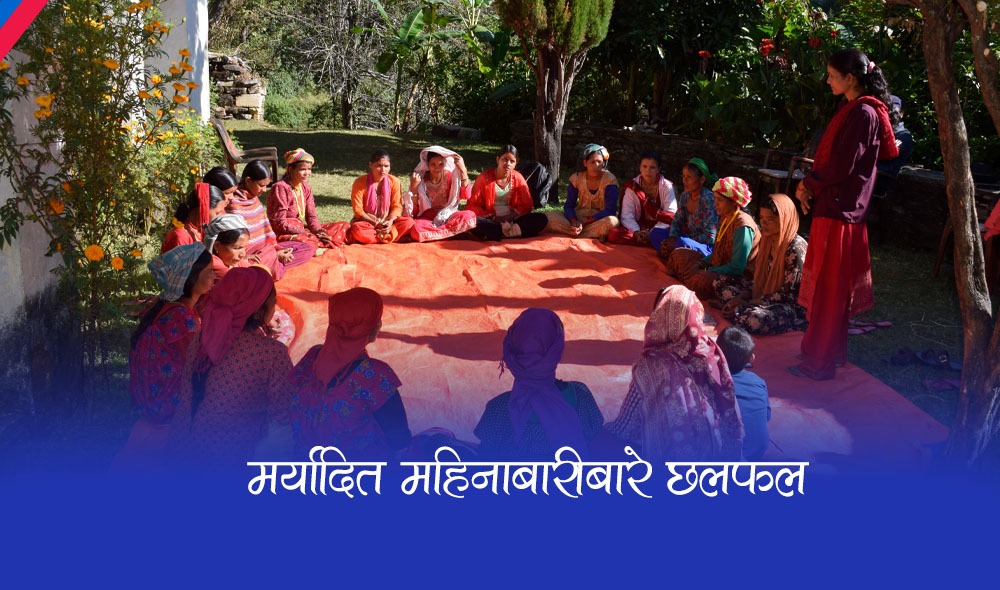 ‘महिनाबारीको विभेद निजी आवासमा, समुदायमा मात्रै होइन, सार्वजनिक ठाउँमा पनि भइरहन्छ,‘ खप्तडछान्ना गाउँपालिका–२ लामातोलाकी लक्ष्मी रावलले भनिन्, ‘सार्वजनिकस्थलमै लामो समय विभेद खेप्नुपरेको कयौँ उदाहरणहरू छन् मसँग । हामी त सामाजिक मान्छे । समाजमा भएका कुरिती हटाउनै लडिरहेका छौँ । तर, पनि अवस्था फेरिएको छैन । बिगतभन्दा थोरै सकारात्मक भने देएिएको छ नतिजा ।’